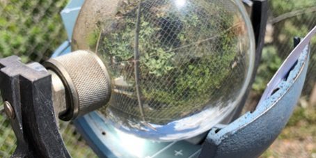 Hydrobiology recently came across a ‘Campbell-Stokes Sunshine Recorder’ located at one of our Client’s weather station sites. A device which is not so commonly used these days, although great to see; the Campbell-Stokes Sunshine Recorder was designed over a century and a half ago! These intriguing devices record daily sunshine hours, by focusing sunlight on a recording card. Over the course of a day, the apparent movement of the sun across the sky, burns a ‘track’ on the card representing the hours of sunlight. Not only does this fascinating device consist of no moving parts, apps, batteries, solar panels or drones, it can also be used as a “crystal-ball” to cross-check forecasts from the Bureau of Meteorology (BoM).